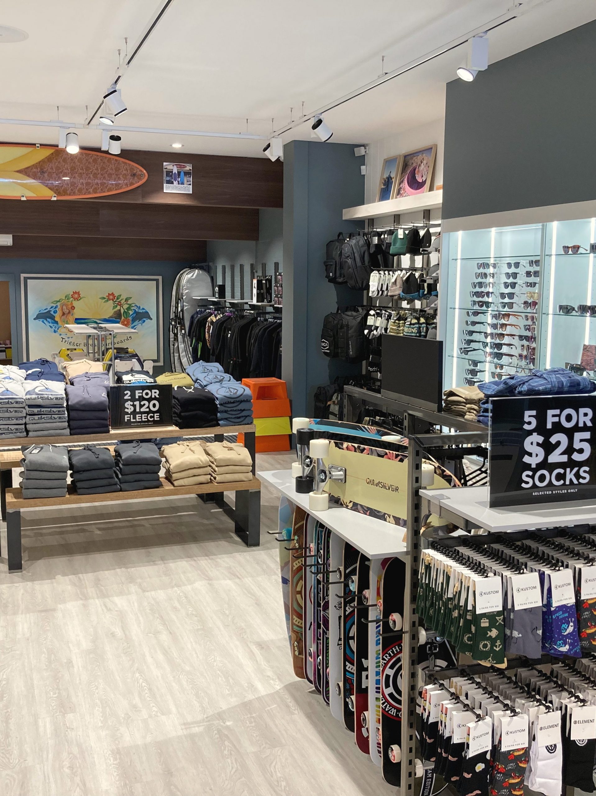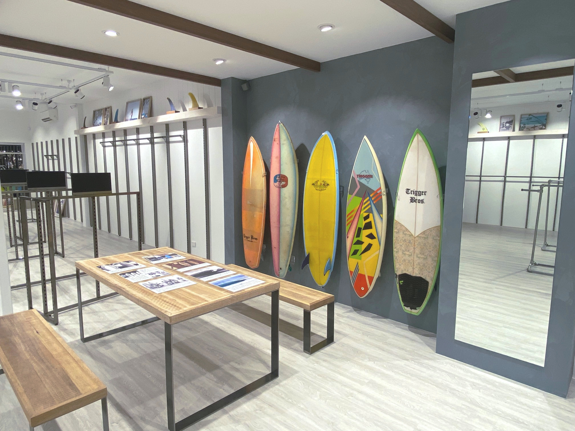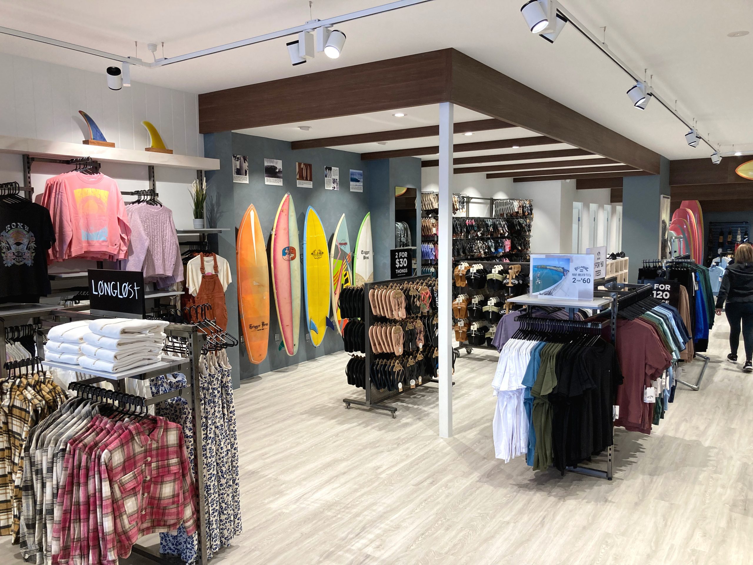 Succeeding the iconic Trigger Bros Surfboards, Boardriders Sorrento pays tribute to the original surfing pioneers by incorporating imagery and storytelling that honour their legacy throughout the space. At the same time the store retains the classic finishes, colours and branding that are synonymous with the Boardriders identity.