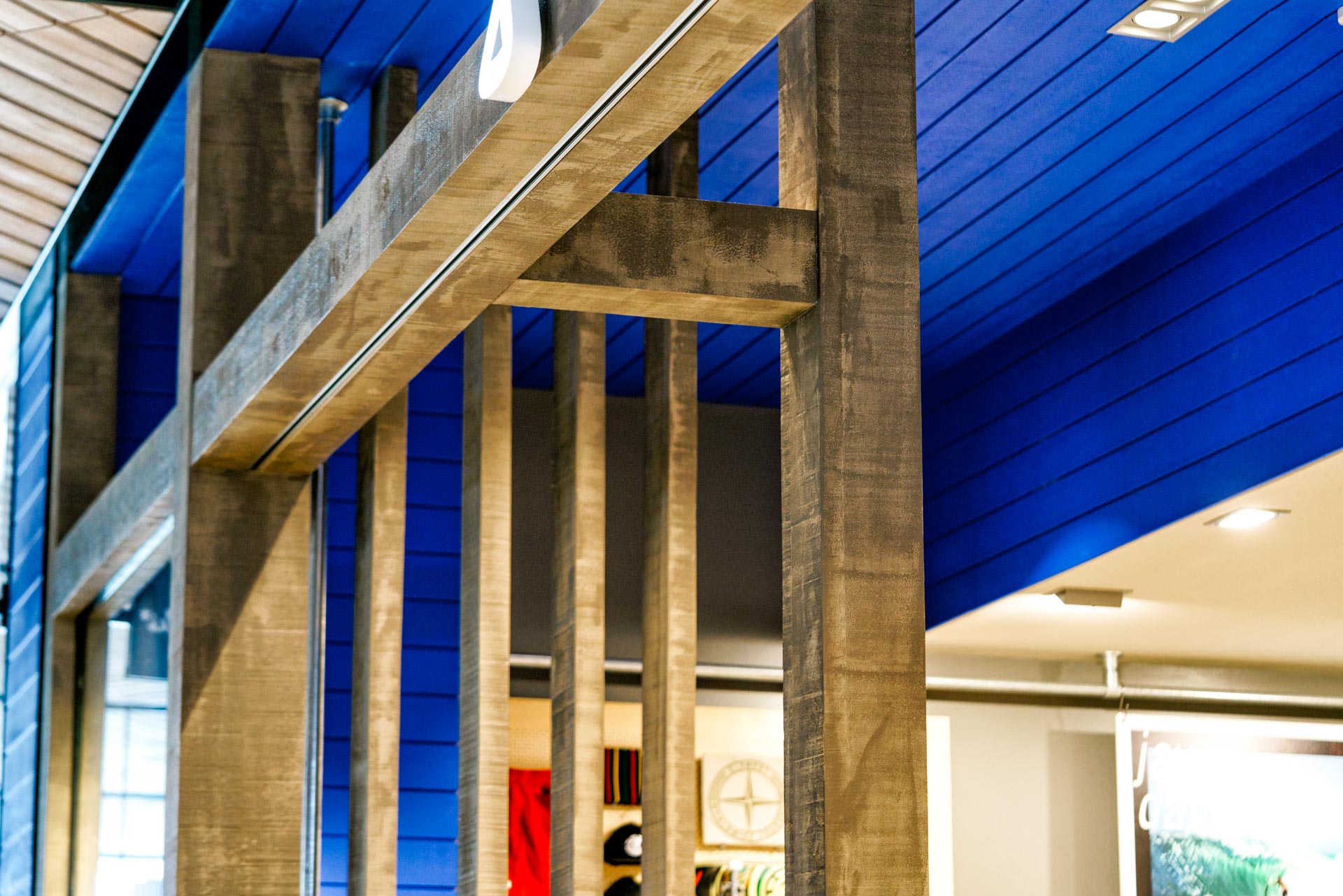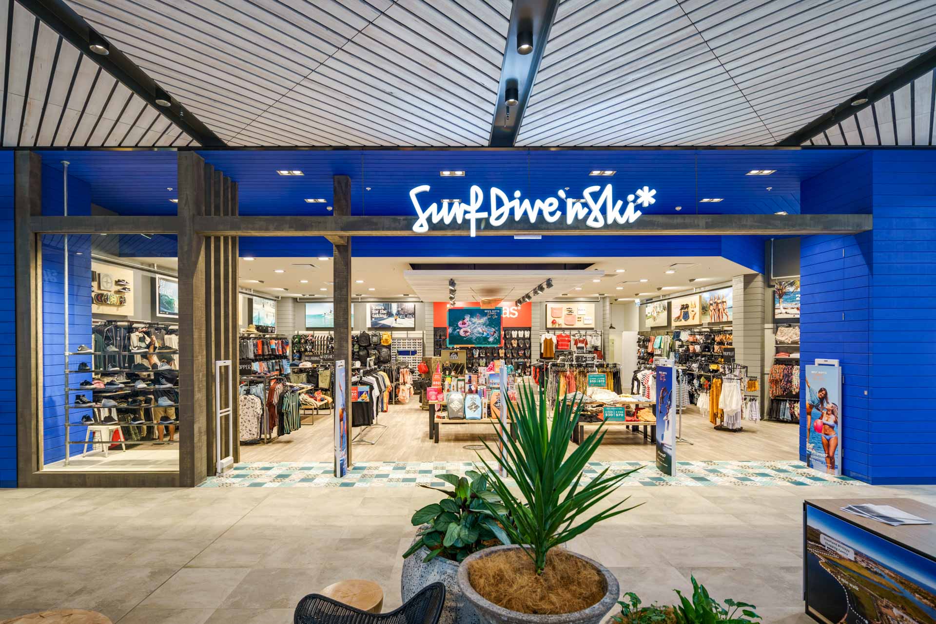With its iconic blue shopfront serving as a welcoming beacon for customers, Surf Dive n Ski stands out once again as a premier surf store. The shopfront beautifully complements the coastal timber accents and bright, warm lighting, enhancing its distinctive presence.